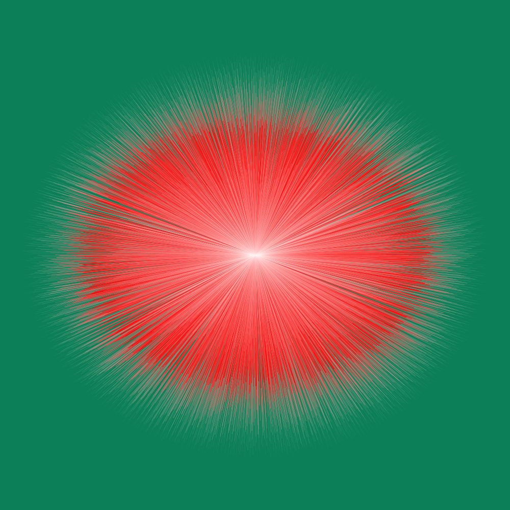 As in some previous artwork, rather than a “purely” randomly located set of points, I’ve employed the Halton Sequence to generate a more evenly spaced set of locations for the “random” points. I also played with how the colours were defined and how each of the random points were connected to each other to give several variations on a theme before settling on the final piece: